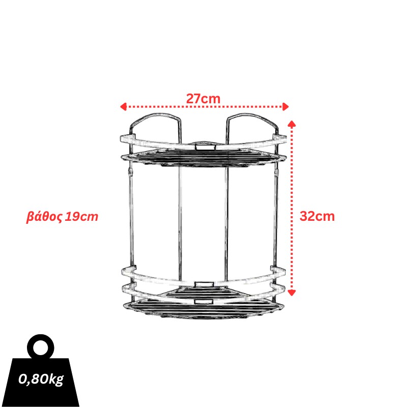 TEKNO-TEL Γωνιακή Ραφιέρα Μπάνιου INOX (Ανοξείδωτο Ατσάλι) 2όροφη 27x19x32cm Βάρος 0.80kg Πάχος Ø5mm