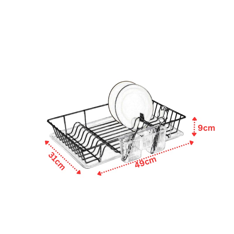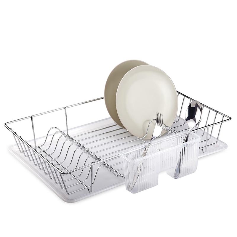 TEKNO-TEL Πιατοθήκη-Στεγνωτήριο Επιχρωμιωμένο Ατσάλι 49x31x9cm 1.20kg με Θήκη και Δίσκο Χαμηλή