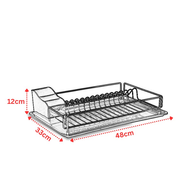 Στεγνωτήριο πιάτων κατασκευασμένο από ανοξείδωτο ατσάλι. Διαθέτει 14 θέσεις πιάτων, αποθηκευτικό χώρο για τα ποτήρια, πλαστική κουταλοθήκη με 3 θέσεις για κουτάλια-πηρούνια-μαχαίρια και πλαστικό δίσκο στην βάση για την σωστή περισυλλογή των υδάτων.