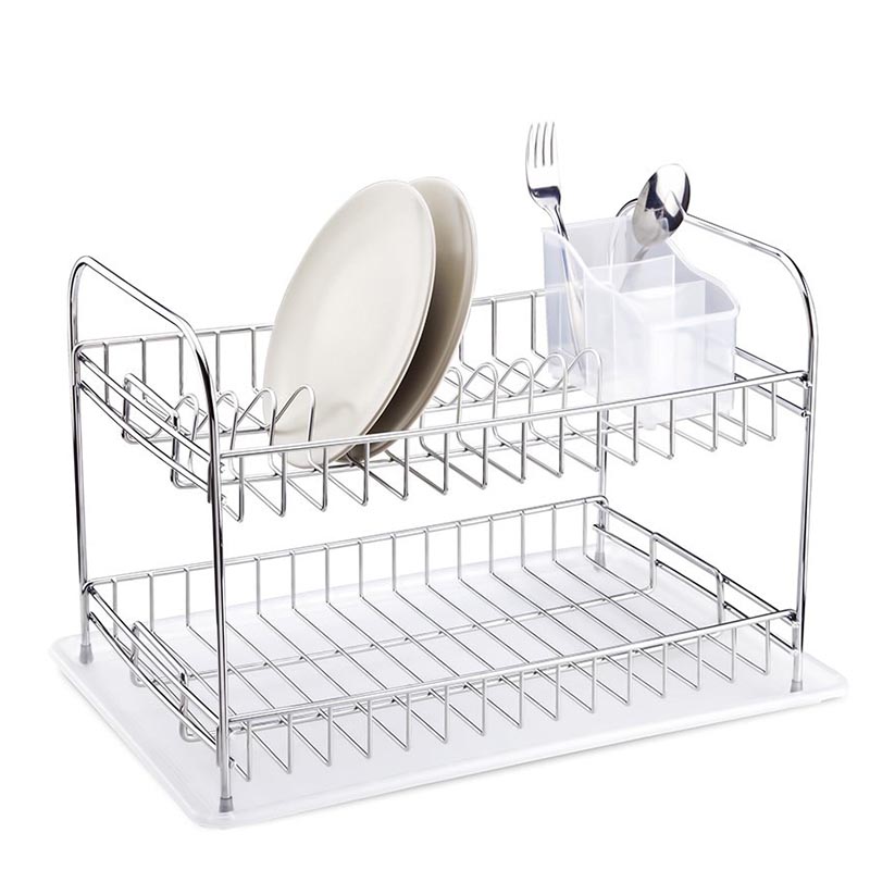 TEKNO-TEL Πιατοθήκη -Στεγνωτήριο Πιάτων 2όροφο Ανοξείδωτο Ατσάλι (INOX) 47x32x31cm 2.6kg 11 Θέσεις Πιατών με Πλαστικό Δίσκο και Κουταλοθήκη