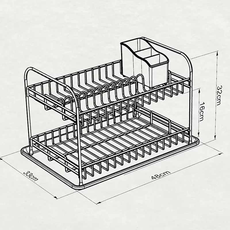 Στεγνωτήριο πιάτων κατασκευασμένο από επιχρωμιωμένο ατσάλι. Διαθέτει 2 επίπεδα αποστράγγισης, το άνω επίπεδο για πιάτα (11 θέσεις) και το κάτω επίπεδο για ποτήρια και άλλα σκεύη. Το στεγνωτήριο διαθέτει πλαστική κουταλοθήκη με 3 διαφορετικές θέσεις για κουτάλια, πιρούνια, μαχαίρια και πλαστικό δίσκο στην βάση για την συλλογή των νερών. Το στεγνωτήριο πιάτων παραδίδεται ασυναρμολόγητο σε μορφή συσκευασίας, καταλαμβάνοντας μικρότερο όγκο.