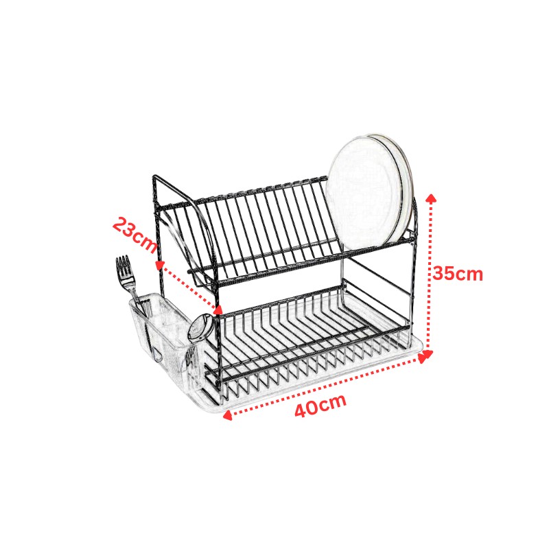 TEKNO-TEL Πιατοθήκη Στεγνωτήριο Πιάτων INOX (Ανοξείδωτο Ατσάλι) 2όροφο 40x23x35cm Βάρος 1.56kg 18 Θέσεις Πιάτων με Θήκη και Δίσκο Μαύρο Matt