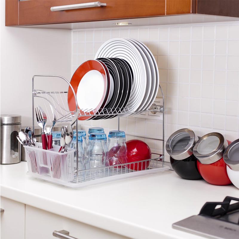 Στεγνωτήρι πιάτων κατασκευασμένο από ανοξείδωτο ατσάλι (ΙΝΟΧ). Διαθέτει δύο επίπεδα αποστράγγισης. Στο πάνω επίπεδο μπορούν να τοποθετηθούν μέχρι και 18 πιάτα και το κάτω επίπεδο χρησιμοποιείται για τοποθέτηση ποτηριών και διαφόρων άλλων σκευών. Το στεγνωτήρι επίσης διαθέτει κουταλοθήκη τριών θέσεων για κουτάλια, πηρούνια, μαχαίρια και πλαστικό δίσκο στην βάση για τη συλλογή του νερού.