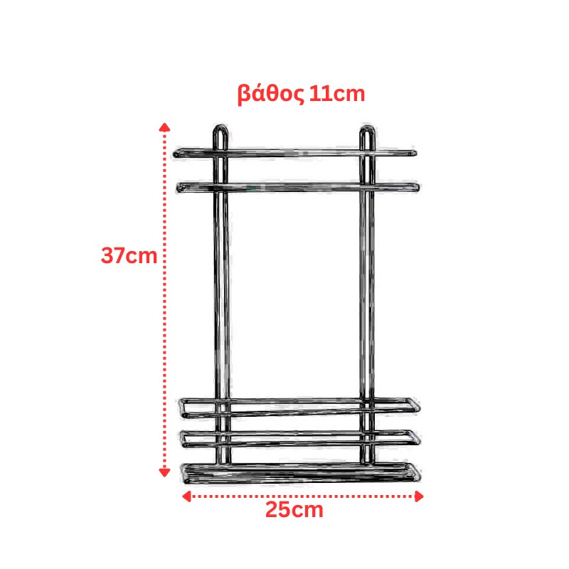 TEKNO-TEL Ραφιέρα Μπάνιου Τοίχου 2όροφη 25x11x37cm Πάχος Ø5mm Επιχρωμιωμένο Ατσάλι