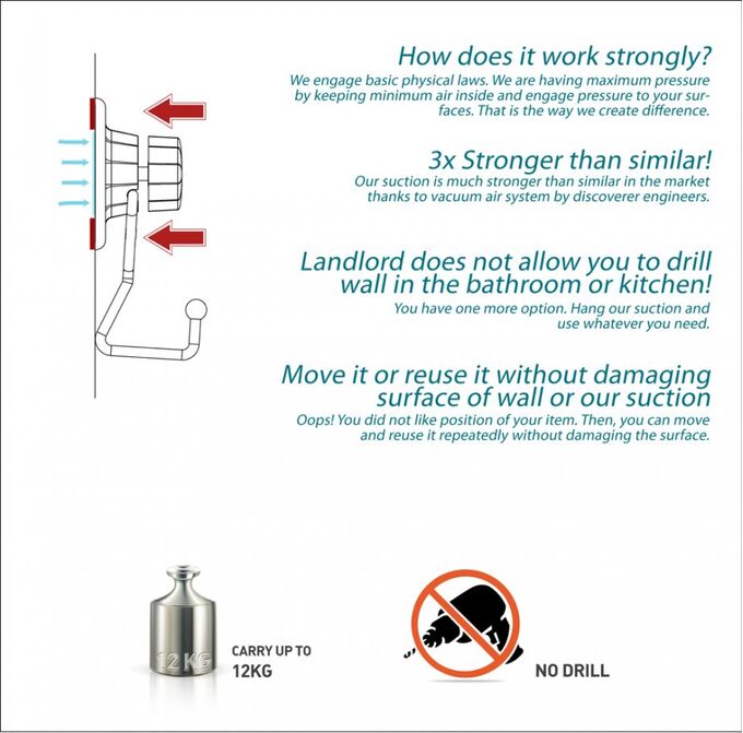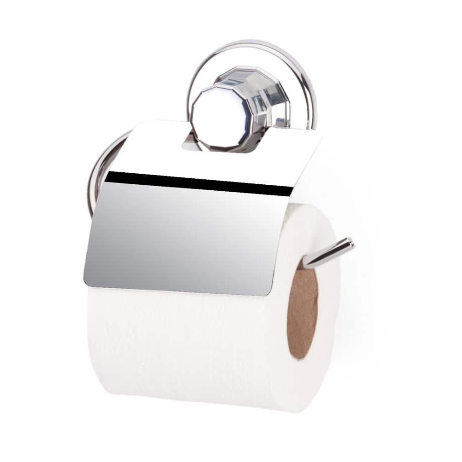 Επιτοίχια χαρτοθήκη με ενσωματωμένο κάλυμμα για προστασία του ρολού από σκόνη, μικρόβια και άλλους μικροοργανισμούς που ενδέχεται να είναι επιβλαβείς για την υγεία. Κατασκευασμένη εξ'ολοκλήρου από επιχρωμιωμένο ατσάλι. Πολύ εύκολη και γρήγορη τοποθέτηση σε λείες επιφάνειες με βεντούζα, είναι 3 φορές πιο σταθερή από τις κοινές βεντούζες λόγω του καινοτόμου μηχανισμού εξαγωγής του αέρα. Αφαιρείται εξίσου εύκολα, χωρίς να αφήνει λεκέδες ή σημάδια στον τοίχο. Ιδανική επιλογή που μπορεί να ταιριάξει απόλυτα με κάθε μπάνιο ή WC.
