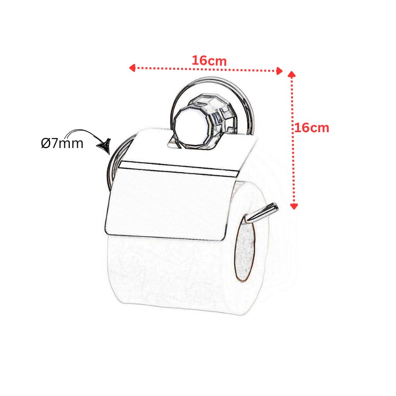 TEKNO-TEL Χαρτοθήκη με Κάλυμμα 16x5x16cm Πάχος Ø7mm Αντοχή 12kg Επιχρωμιωμένο Ατσάλι με Βεντούζα EXTRA STRONG