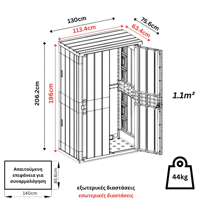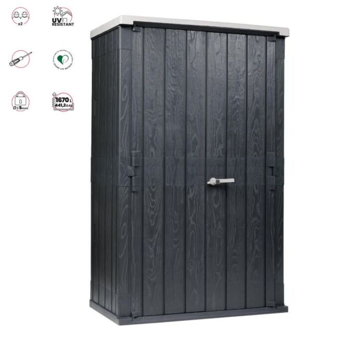 Ιδανικός αποθηκευτικός χώρος για τον κήπο, το γκαράζ ή την βεράντα καθώς διαθέτει χωρητικότητα 1670 λίτρων, ικανή να φιλοξενήσει εργαλεία, παιχνίδια, έπιπλα κήπου και μεγάλες οικοσκευές όπως σιδερώστρες, απλώστρες, σκάλες κ.α.