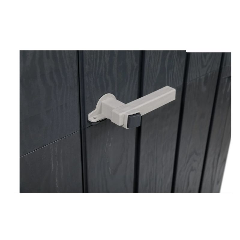 Διαθέτει υποδοχή κλειδαριάς (δεν περιλαμβάνεται λουκέτο), οπές στην πίσω πλευρά που επιτρέπουν να βιδωθεί στον τοίχο προσφέροντας μέγιστη προστασία σε περίπτωση ισχυρών ανέμων και επικλινή οροφή που εξυπηρετεί στην απορροή των ομβρίων υδάτων.