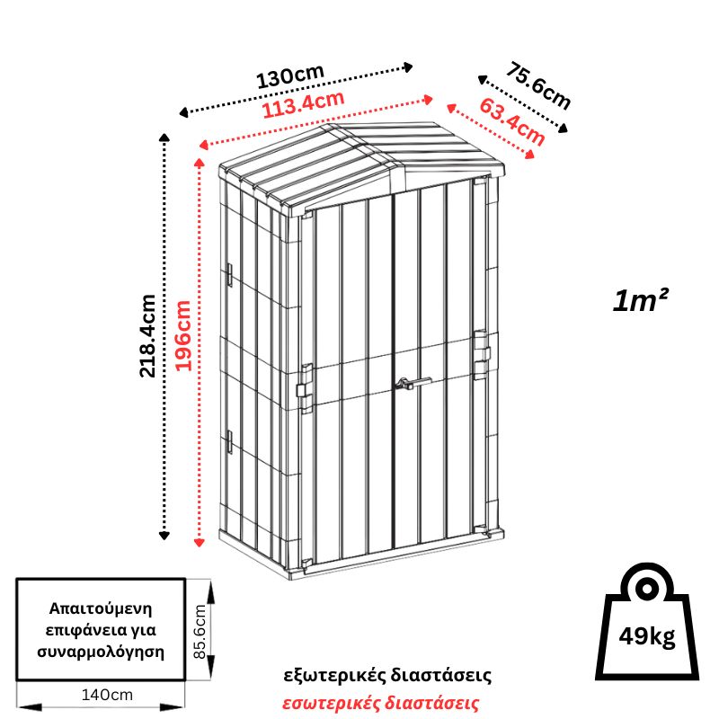 Εσωτερική επιφάνεια: 1m²