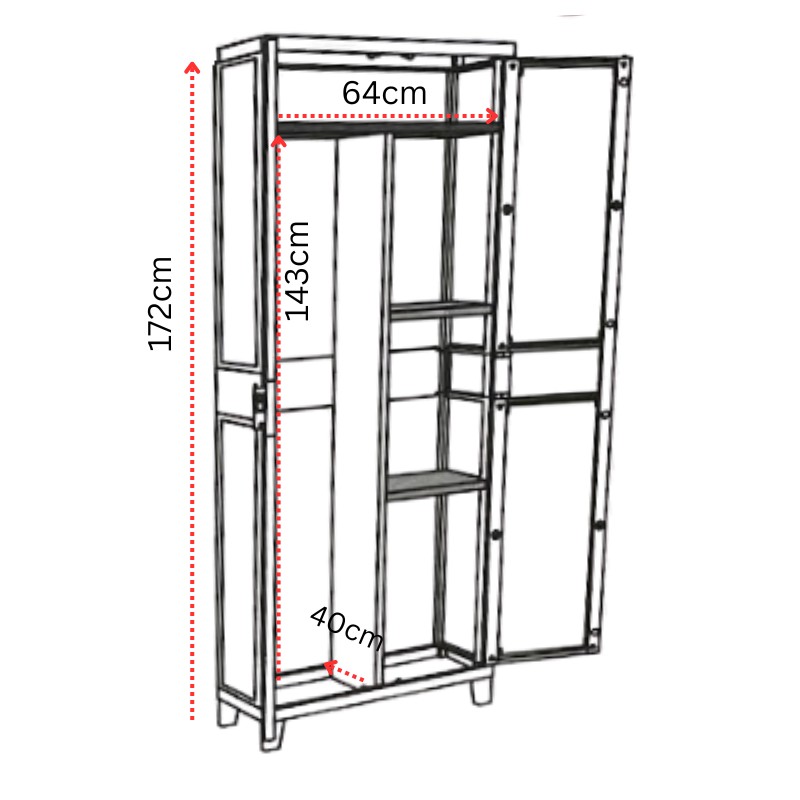 Η ντουλάπα διαθέτει δυνατότητα ασφαλούς κλειδώματος (το λουκέτο δεν περιλαμβάνεται), ενώ στην πίσω πλευρά υπάρχουν οπές στήριξης που επιτρέπουν τη βίδωσή της στον τοίχο, προσφέροντας μέγιστη ασφάλεια σε περίπτωση ισχυρών ανέμων.