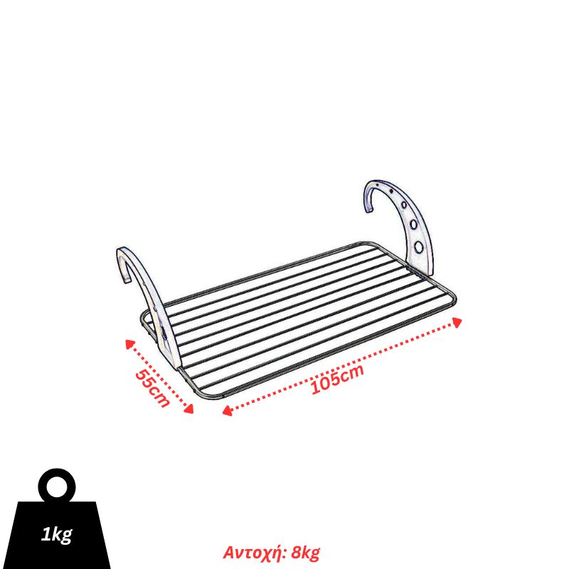 VESTA Απλώστρα Ρούχων Μπαλκονιού 105x55x28cm 100% Αλουμινίου-Πλαστικό MAX 10m Άπλώματος Αντοχή 8kg Βάρος 1kg