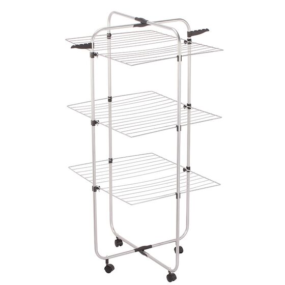 Πτυσσόμενη απλώστρα 3 επιπέδων κατασκευασμένη από μέταλλο βαμμένο με ηλεκτροστατική βαφή.