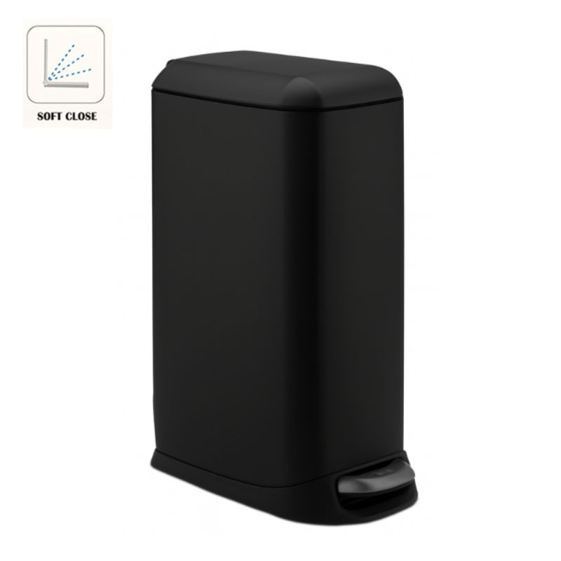 VESTA Κάδος Απορριμμάτων 20lt SOFT CLOSE 23.5x40x56cm με Πεντάλ και Εσωτερικό Κάδο 3.55kg Μαύρο Μatte