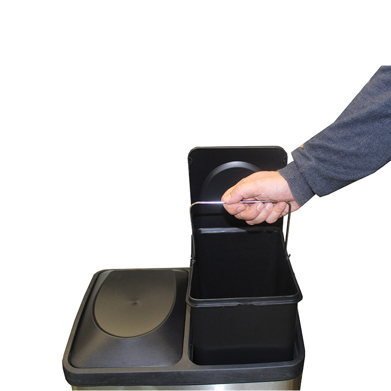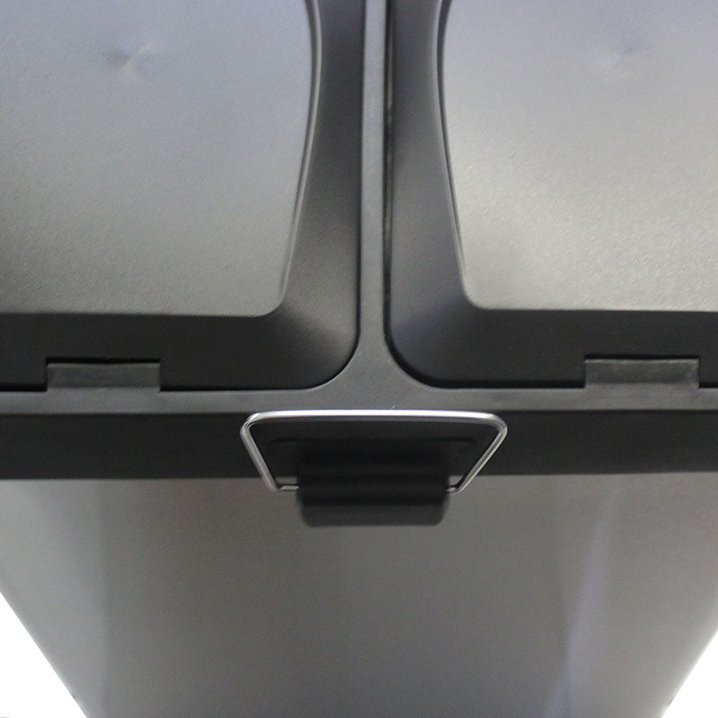 Διαθέτει δύο θέσεις για διαχωρισμό των απορριμμάτων, σύστημα ανοίγματος με το πόδι (πεντάλ) για διευκόλυνση στη χρήση και χειρολαβή για εύκολη μετακίνηση.