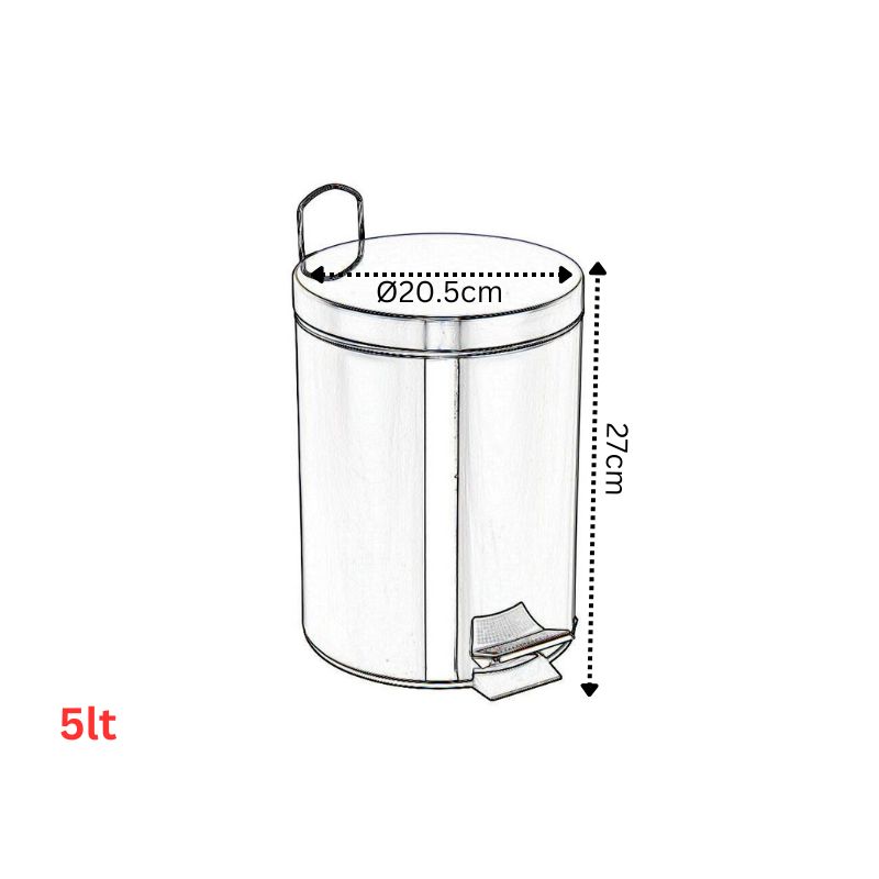 Δοχείο απορριμμάτων χωρητικότητας 5 λίτρων, κατασκευασμένο από ανοξείδωτο ατσάλι (ΙΝΟΧ) με γυαλιστερό φινίρισμα, μεγάλης αντοχής στο χρόνο.