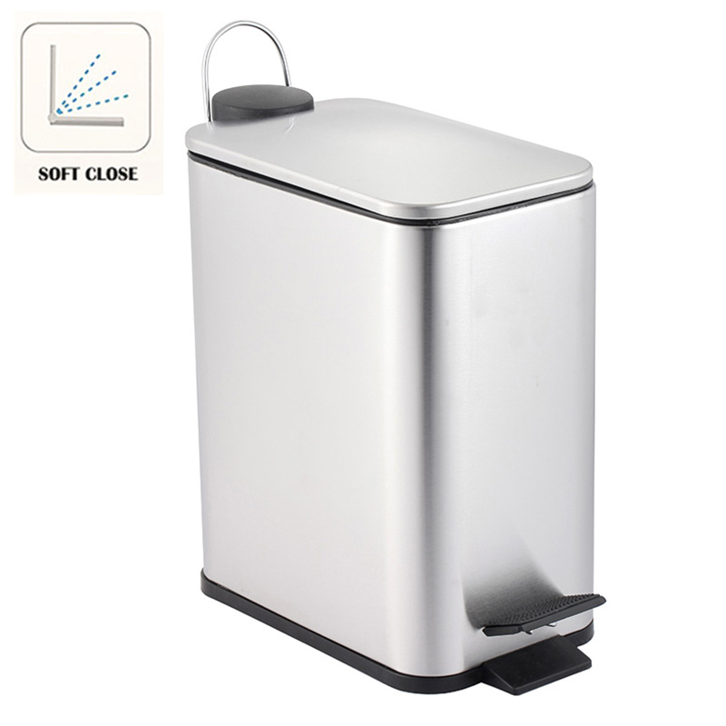VESTA Κάδος Μπάνιου 5lt Ορθογώνιος με Πεντάλ Soft Close 28x14x29cm Καπάκι Slim Ανοξείδωτο Ατσάλι Matte Ασημί