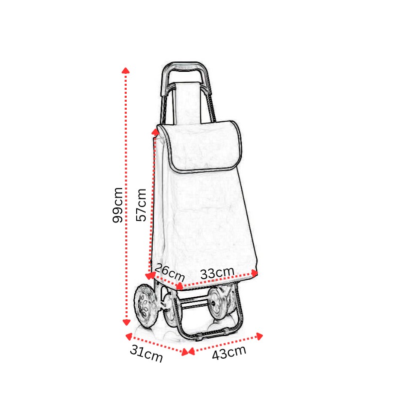 Καρότσι λαϊκής χωρητικότητας 55 λίτρων. Ο σκελετός είναι κατασκευασμένος από αλουμίνιο με σάκο από συνθετικό ύφασμα πολυεστέρα 600D που αφαιρείται και πλένεται στο πλυντήριο.