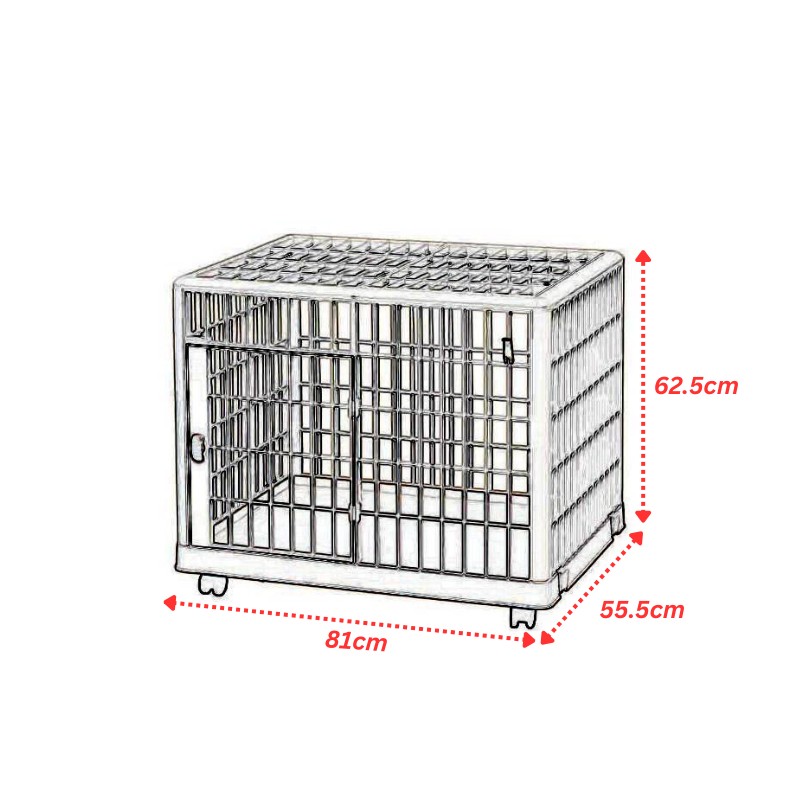Διαθέτει 2 θύρες εισόδου-εξόδου, μια στη μπροστινή πλευρά και μια στην οροφή του κλουβιού, μηχανισμούς κλειδώματος στις 2 θύρες, πάτωμα το οποίο αφαιρείται ώστε να πλένεται με ευκολία, 5 ρόδες και πλαστική χειρολαβή στο άνω μέρος ώστε να διευκολύνεται η μεταφορά του.