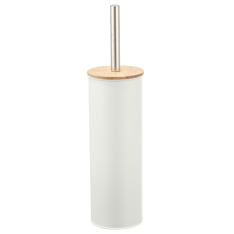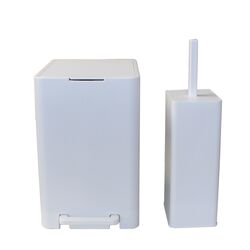 Σετ δοχείο απορριμάτων ορθογώνιο και πιγκάλ, κατασκευασμένα από ατσάλι βαμμένο σε λευκό χρώμα με ματ φινίρισμα και μπαμπού καπάκι, υψηλής αντοχής στη καθημερινή χρήση.