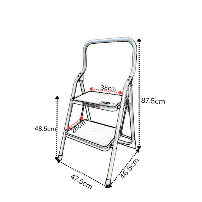 VESTA Σκαλοσκαμπό Μεταλλικό 47.5x46.5x87.5cm με 2 Σκαλιά MAX Αντοχή 150kg Βάρος 4.9kg PLUS Λευκό