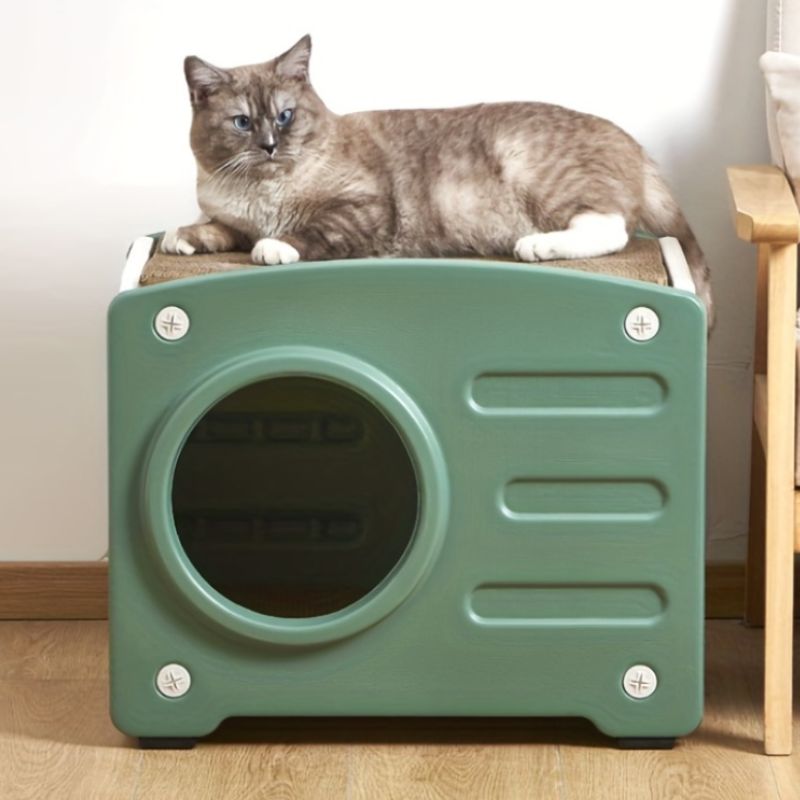Σπίτι γάτας κατασκευασμένο από πολυπροπυλένιο, υλικό που σέβεται και προστατεύει το περιβάλλον εφόσον είναι 100% ανακυκλώσιμο ενώ παράλληλα παρέχει υψηλή αντοχή στη φθορά του χρόνου και των καιρικών συνθηκών. Δεν απορροφά οσμές και υγρασία, πλένεται εύκολα, είναι ανθεκτικό έναντι ελαιών και διαλυτών και δημιουργεί ένα ιδανικό περιβάλλον για το κατοικίδιο.