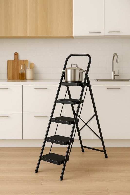 Διαθέτει δύο σκαλοπάτια με αντιολισθητική επιφάνεια για ασφαλή χρήση, καθώς και μεταλλικές αντιρρίδες που ενισχύουν τη σταθερότητα, συνδέοντας τον σκελετό με τα σκαλοπάτια για μεγαλύτερη προστασία. Τα πόδια του διαθέτουν πλαστικά καλύμματα, προστατεύοντας αποτελεσματικά το δάπεδο από γρατζουνιές.