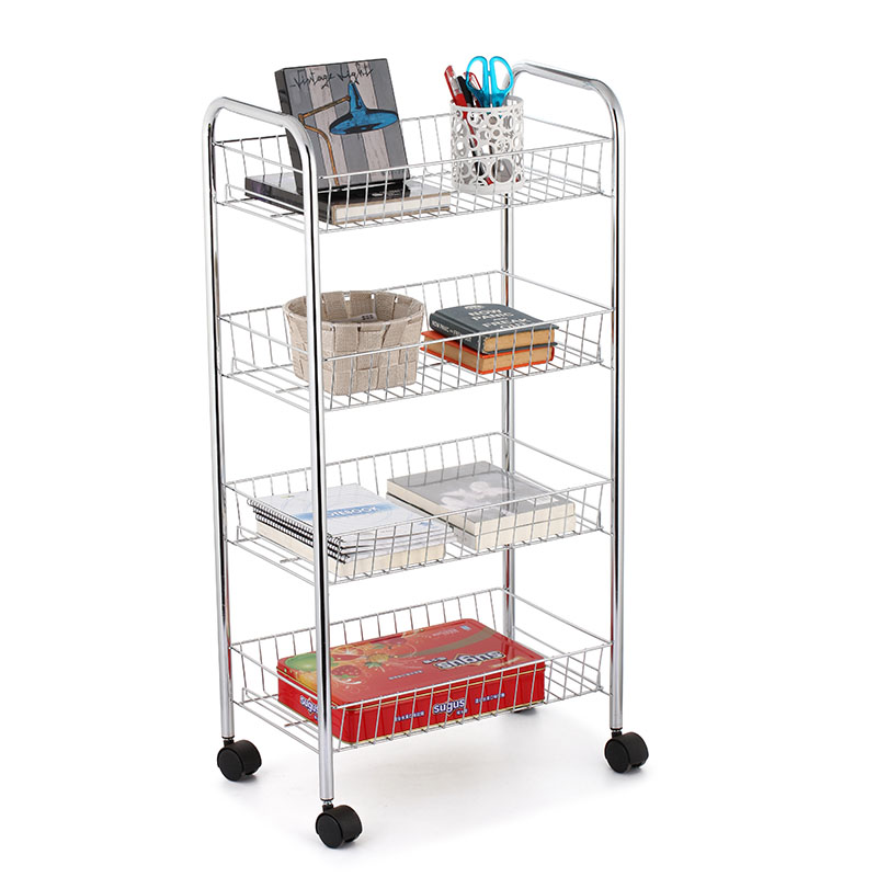 Διαθέτει 4 μεταλλικά ράφια για αποθήκευση αντικειμένων, τα οποία αφαιρούνται διευκολύνοντας τη χρήση και τον καθαρισμό τους και 4 πλαστικές ρόδες με δυνατότητα στριφογυρίσματος 360° που καθιστούν εύκολη τη μετακίνηση του.