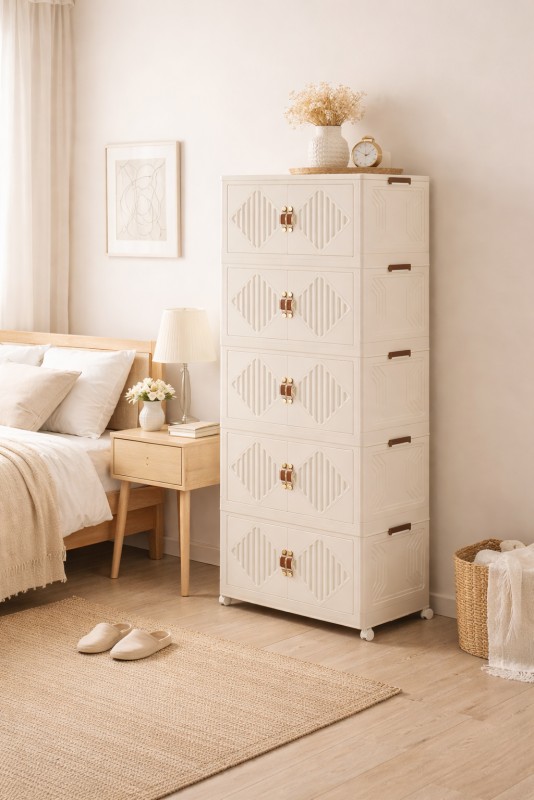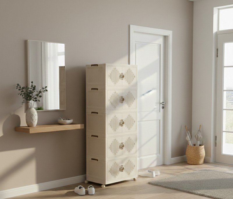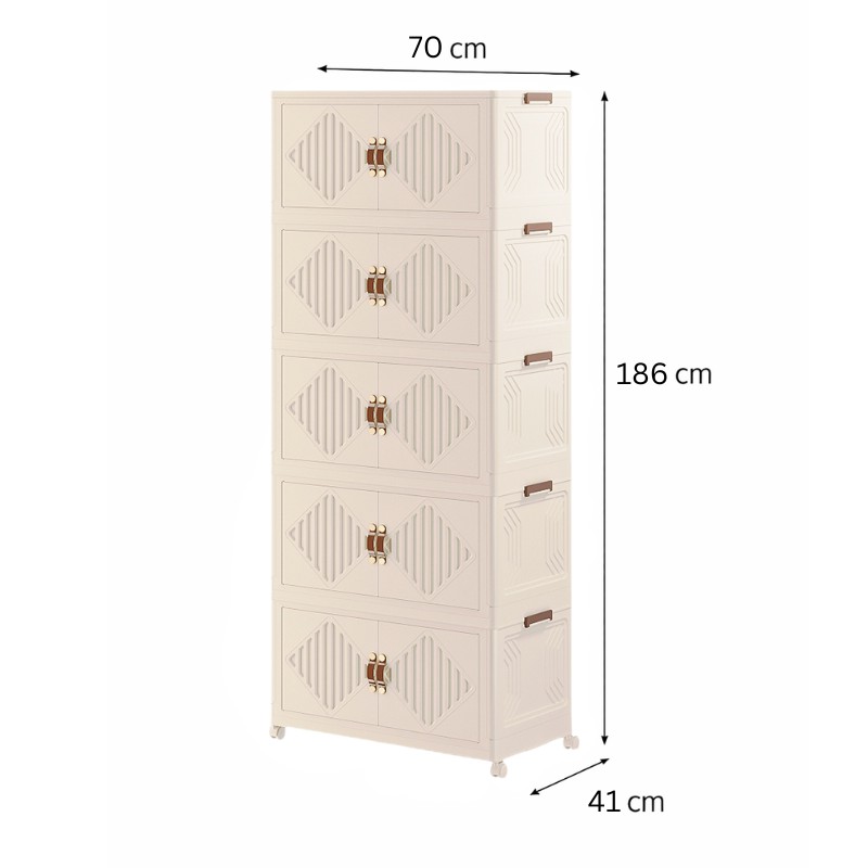 VESTA Πλαστική ντουλάπα αποθήκευσης 5 επιπέδων αποτελεί την ιδανική λύση για οργανωμένους και λειτουργικούς χώρους, συνδυάζοντας τον κομψό σχεδιασμό με τη μέγιστη  πρακτικότητα. Ο μοντέρνος σχεδιασμός της σε ουδέτερο χρώμα την καθιστά κατάλληλη για κάθε χώρο του σπιτιού ή της επιχείρησης, ενώ η κάθετη κατασκευή της εξοικονομεί πολύτιμο χώρο χωρίς να περιορίζει τη χωρητικότητα.