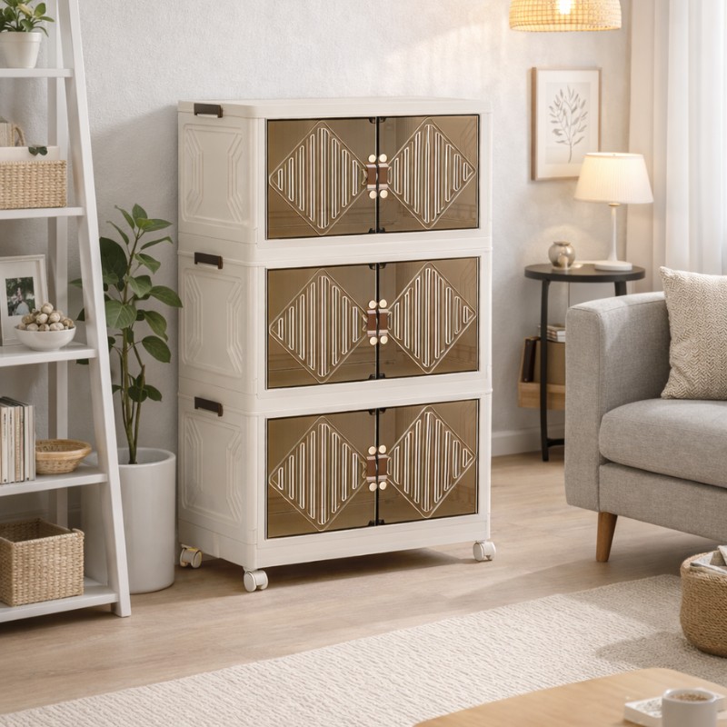 Η VESTA Πλαστική Ντουλάπα 3 επιπέδων αποθήκευσης συνδυάζει τη στιβαρή κατασκευή με έναν καινοτόμο, πτυσσόμενο σχεδιασμό. Είναι ιδανική για το υπνοδωμάτιο, το σαλόνι, το μπάνιο ή ακόμα και το γραφείο, προσφέροντας άφθονο χώρο για ρούχα, παιχνίδια, βιβλία ή είδη οικιακής χρήσης