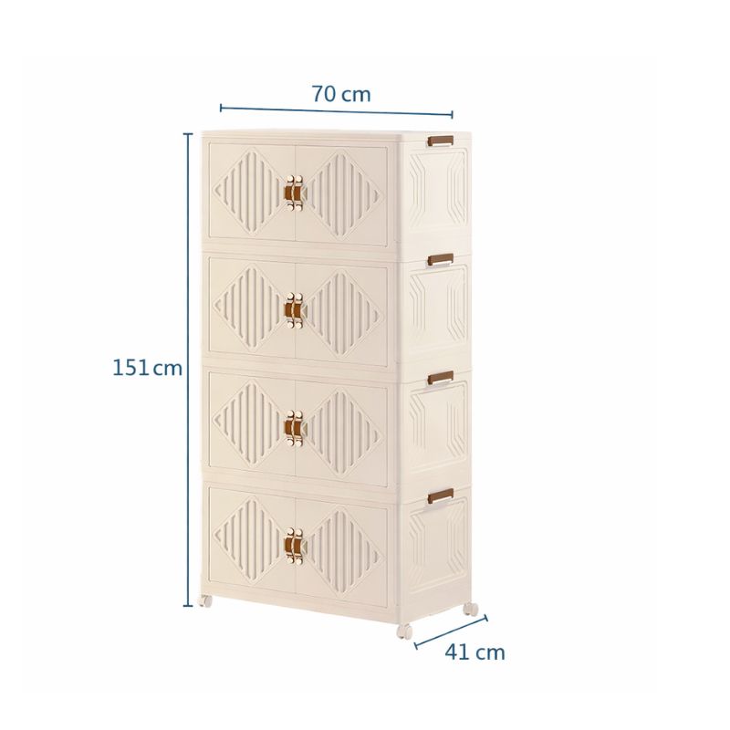 H VESTA Πλαστική ντουλάπα αποθήκευσης 4 επιπέδων αποτελεί την ιδανική λύση για οργανωμένους και λειτουργικούς χώρους, συνδυάζοντας τον κομψό σχεδιασμό με τη μέγιστη πρακτικότητα. Ο μοντέρνος σχεδιασμός της σε ουδέτερο χρώμα την καθιστά κατάλληλη για κάθε χώρο του σπιτιού ή της επιχείρησης, ενώ η κάθετη κατασκευή της εξοικονομεί πολύτιμο χώρο χωρίς να περιορίζει τη χωρητικότητα.