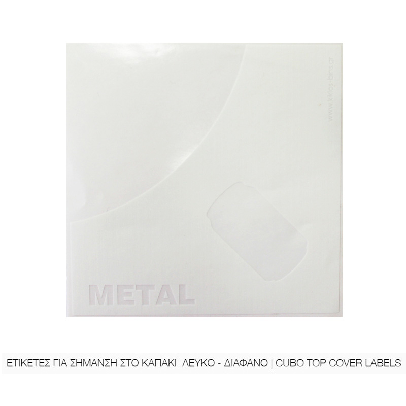 VIOMES Ελλάδας Αυτοκόλλητη Ετικέτα Premium 13x13cm Γωνιακή Αδιάβροχη με Σήμανση για Καπάκια Κάδων Ανακύκλωσης "Μέταλλο" Λευκή Διάφανη