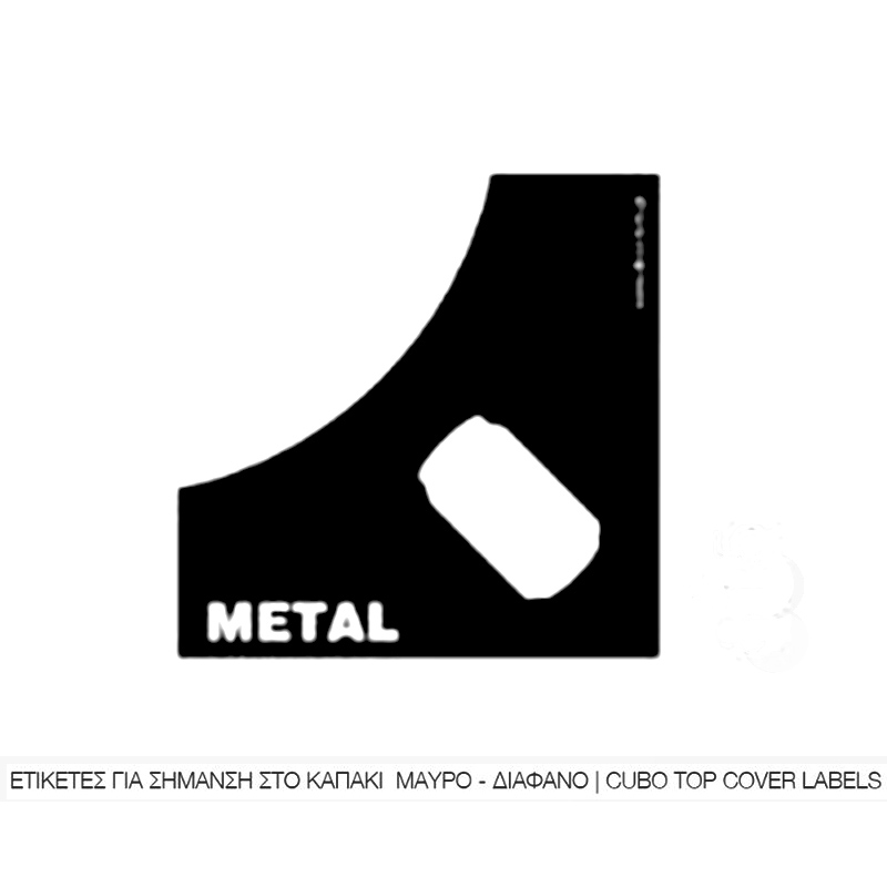 Αυτοκόλλητη γωνιακή ετικέτα από βινύλιο, για διαχωρισμό στο καπάκι της χρήσεως των κάδων ανακύκλωσης, με σήμανση "μέταλλο".