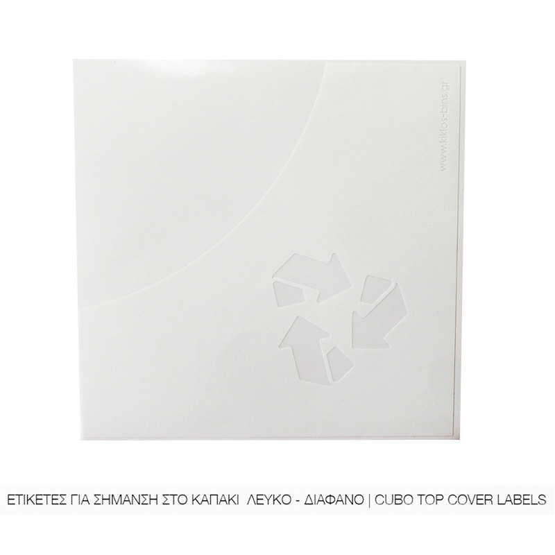VIOMES Ελλάδας Αυτοκόλλητη Ετικέτα Premium 13x13cm Γωνιακή Αδιάβροχη με Σήμανση για Καπάκια Κάδων Ανακύκλωσης "MIX" Λευκή Διάφανη