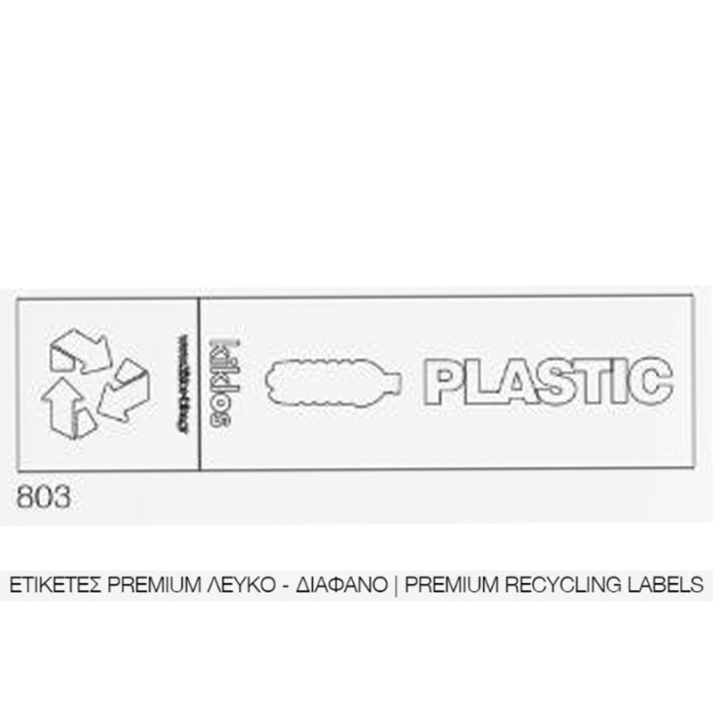 VIOMES Ελλάδας Αυτοκόλλητη Ετικέτα Premium 8.5x33cm Αδιάβροχη με Σήμανση για Κάδους Ανακύκλωσης "Πλαστικό" Λευκή Διάφανη