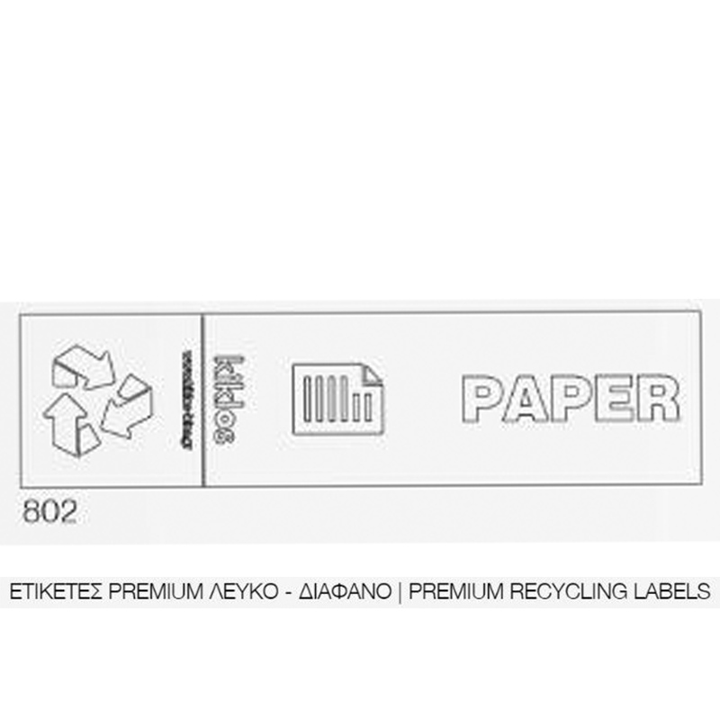 VIOMES Ελλάδας Αυτοκόλλητη Ετικέτα Premium 8.5x33cm Αδιάβροχη με Σήμανση για Κάδους Ανακύκλωσης "Χαρτί" Λευκή Διάφανη
