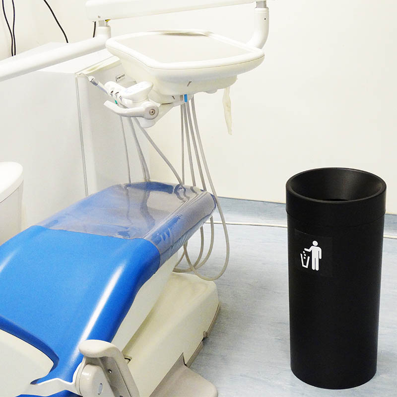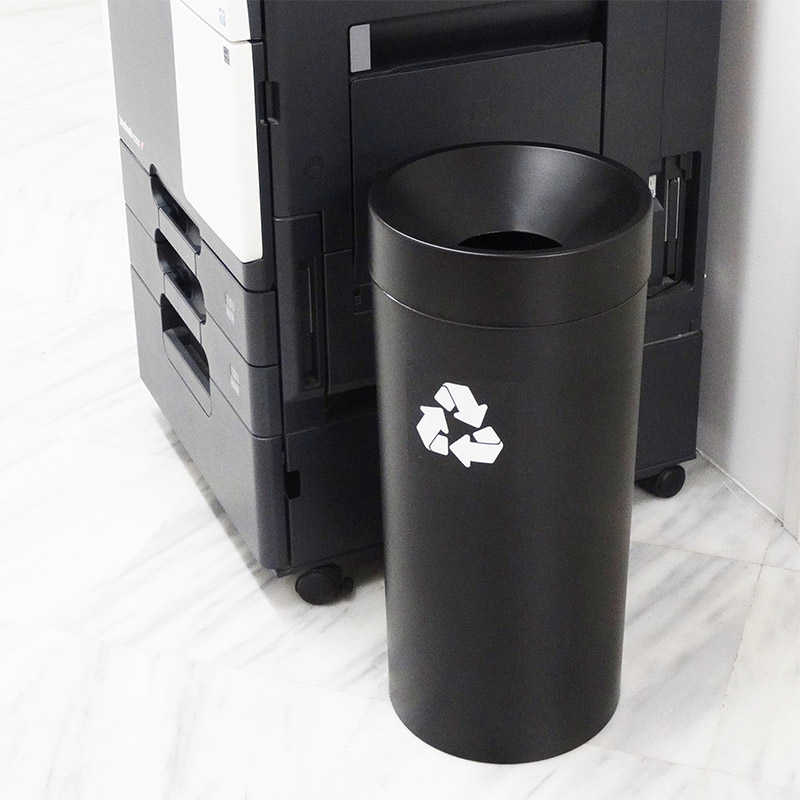 Εσωτερικά διαθέτει μεταλλικό στεφάνι για τις σακούλες απορριμάτων ενώ μπορεί να συνδυαστεί με τις ετικέτες διαχωρισμού της χρήσεώς τους με μαύρο ή λευκό φόντο.