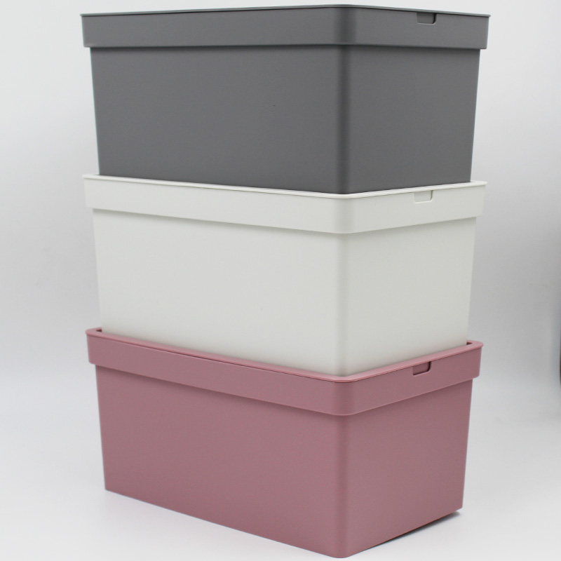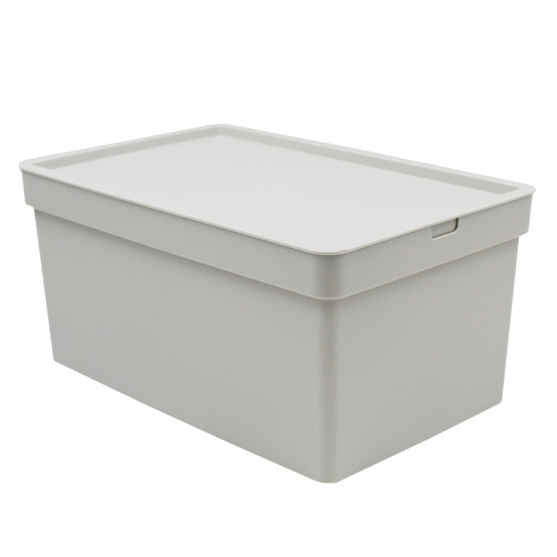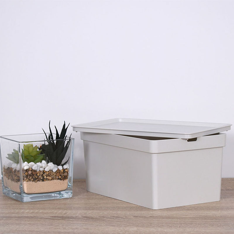 Ορθογώνιο κουτί αποθήκευσης ελληνικής παραγωγής, κατασκευασμένο από πλαστικό υψηλής αντοχής στο χρόνο και την καθημερινή χρήση σε ανοιχτό γκρι/μπεζ χρώμα.