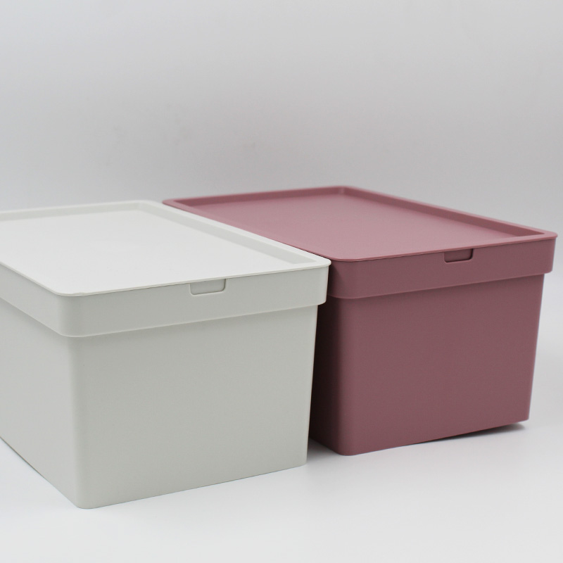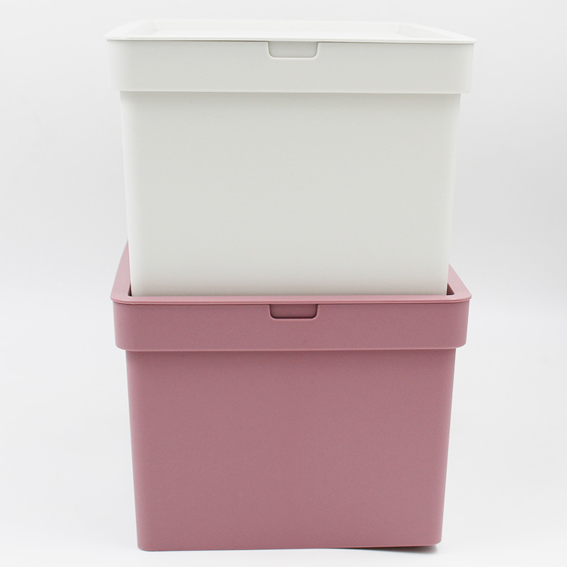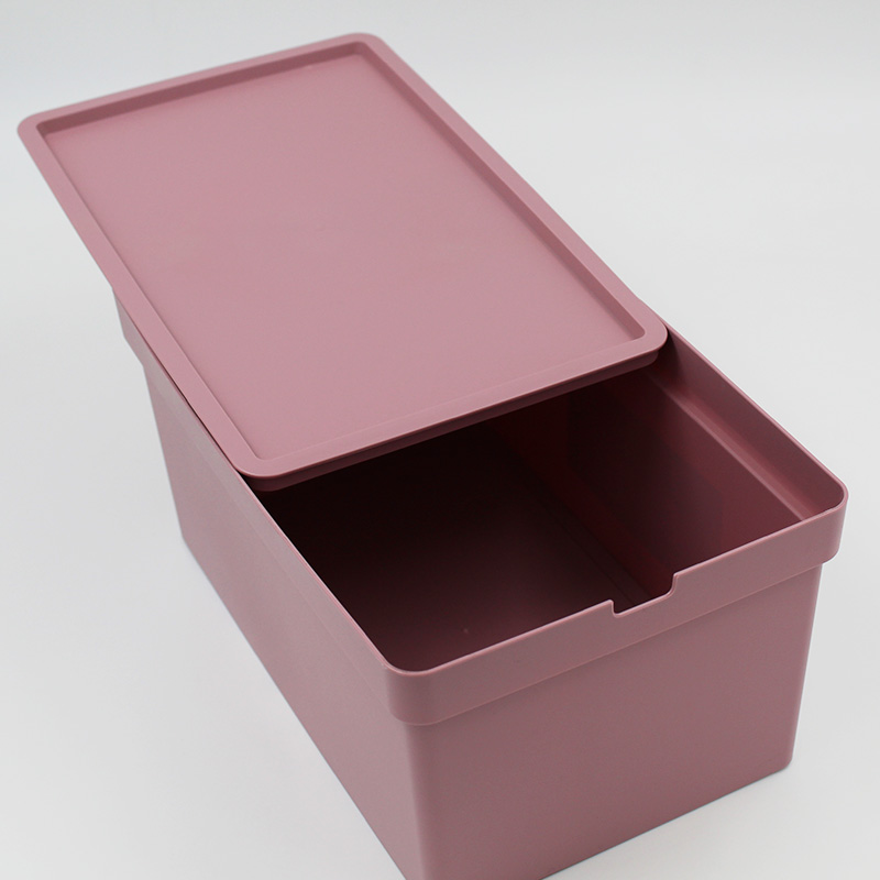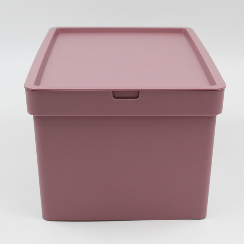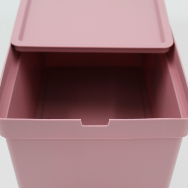 Ορθογώνιο κουτί αποθήκευσης ελληνικής παραγωγής, κατασκευασμένο από πλαστικό υψηλής αντοχής στο χρόνο και την καθημερινή χρήση σε ροζ παστέλ χρώμα.