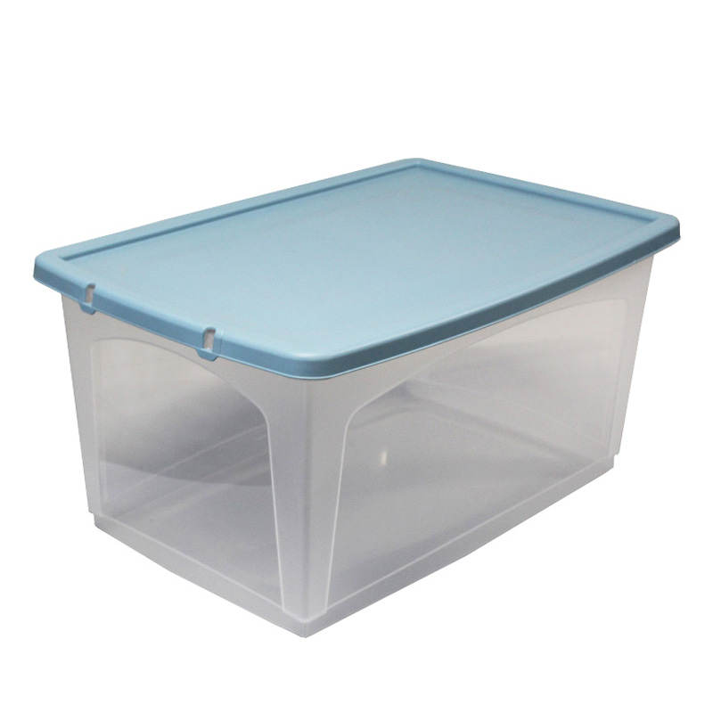 VIOMES Ελλάδας Κουτί Αποθήκευσης 59x40x30cm Πλαστικό 52lt Βάρος 1.25kg Διάφανο με Σιέλ Καπάκι